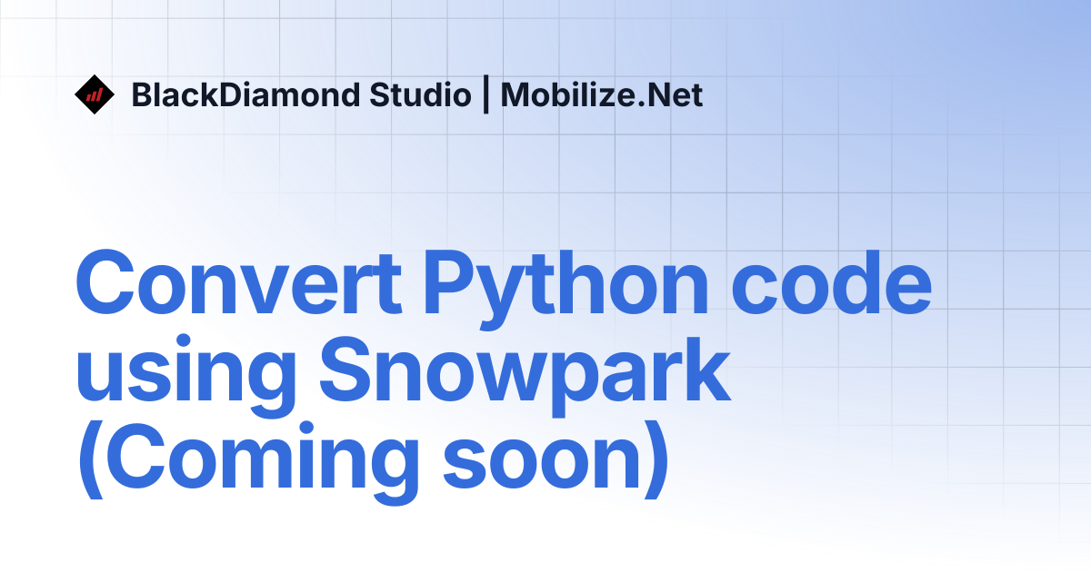 Convert Python code using Snowpark (Coming soon) | BlackDiamond Studio ...