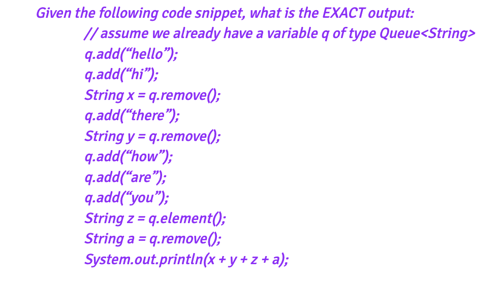 Solved Given the following code snippet, what is the EXACT | Chegg.com