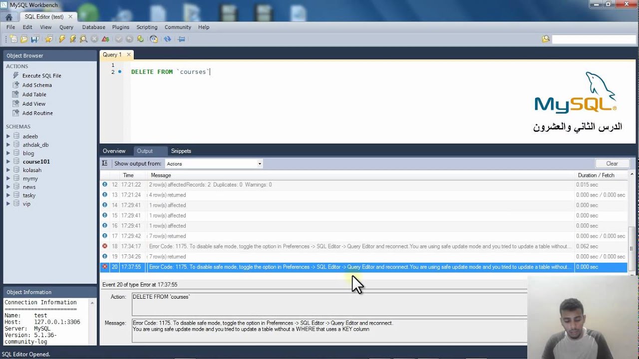 الدرس الثالث والعشرون : حذف صفوف بإستخدام DELETE و WHERE - YouTube