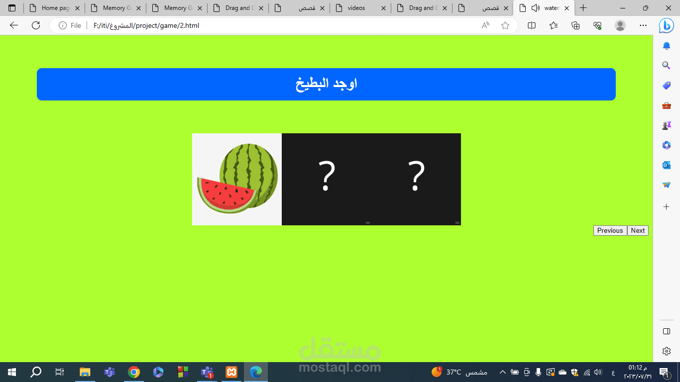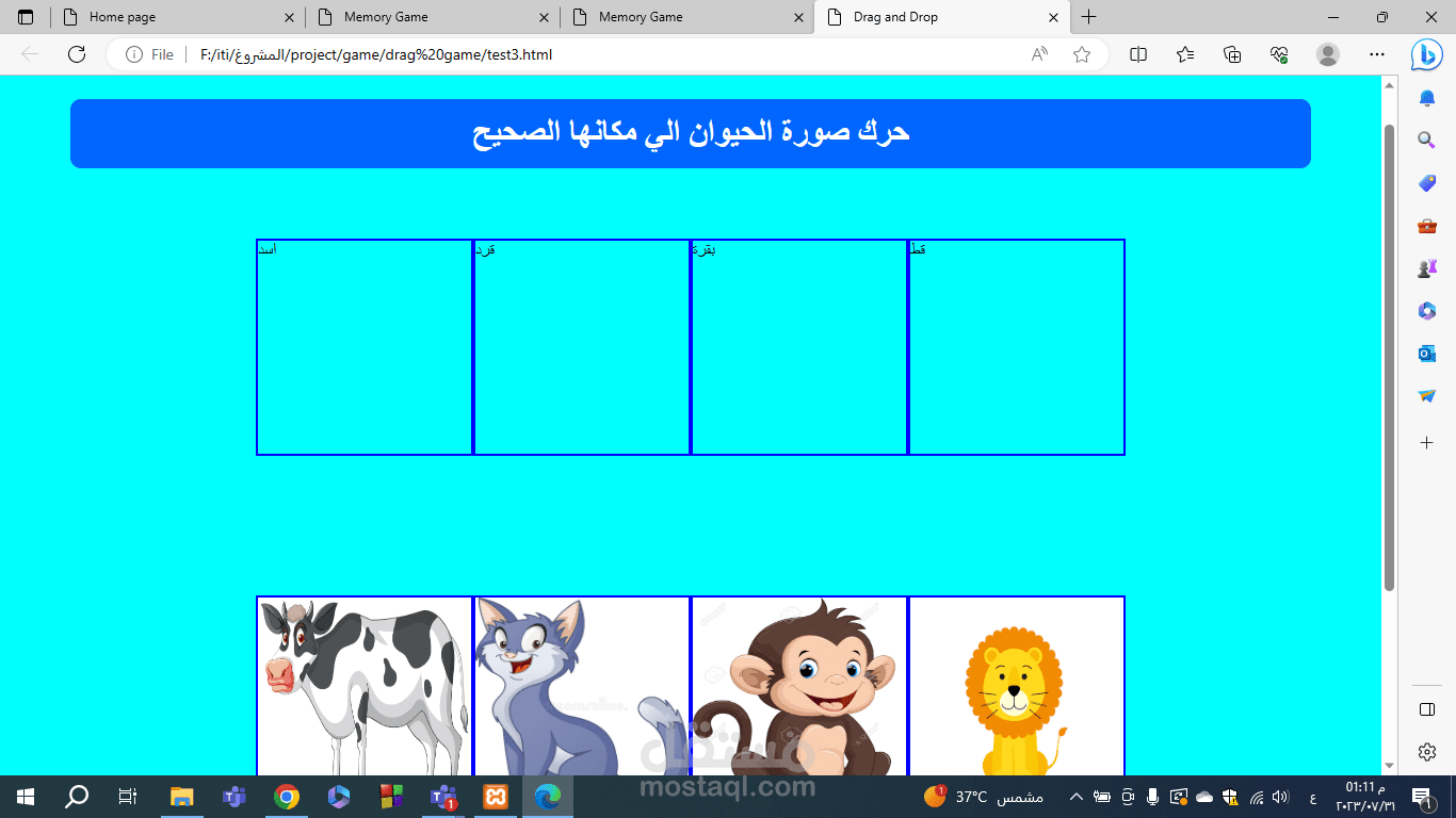 موقع تعليمي للاطفال باستخدام الجافا سكريبت | مستقل