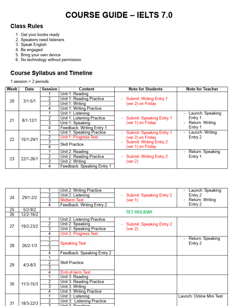 IELTS 7.0 Course Guide and Syllabus | PDF