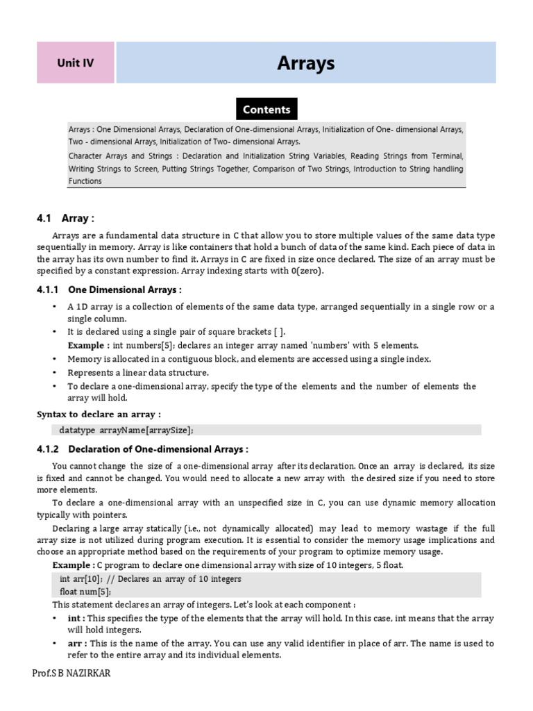 C Unit 6: Arrays and String Functions Explained - Studocu