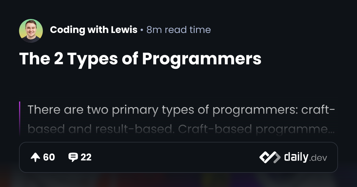 The 2 Types of Programmers.. There are two types of programmers and ...
