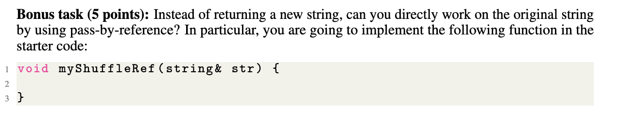 Solved 2 Problem 2: Shuffle a string (30+5 points ) In this | Chegg.com