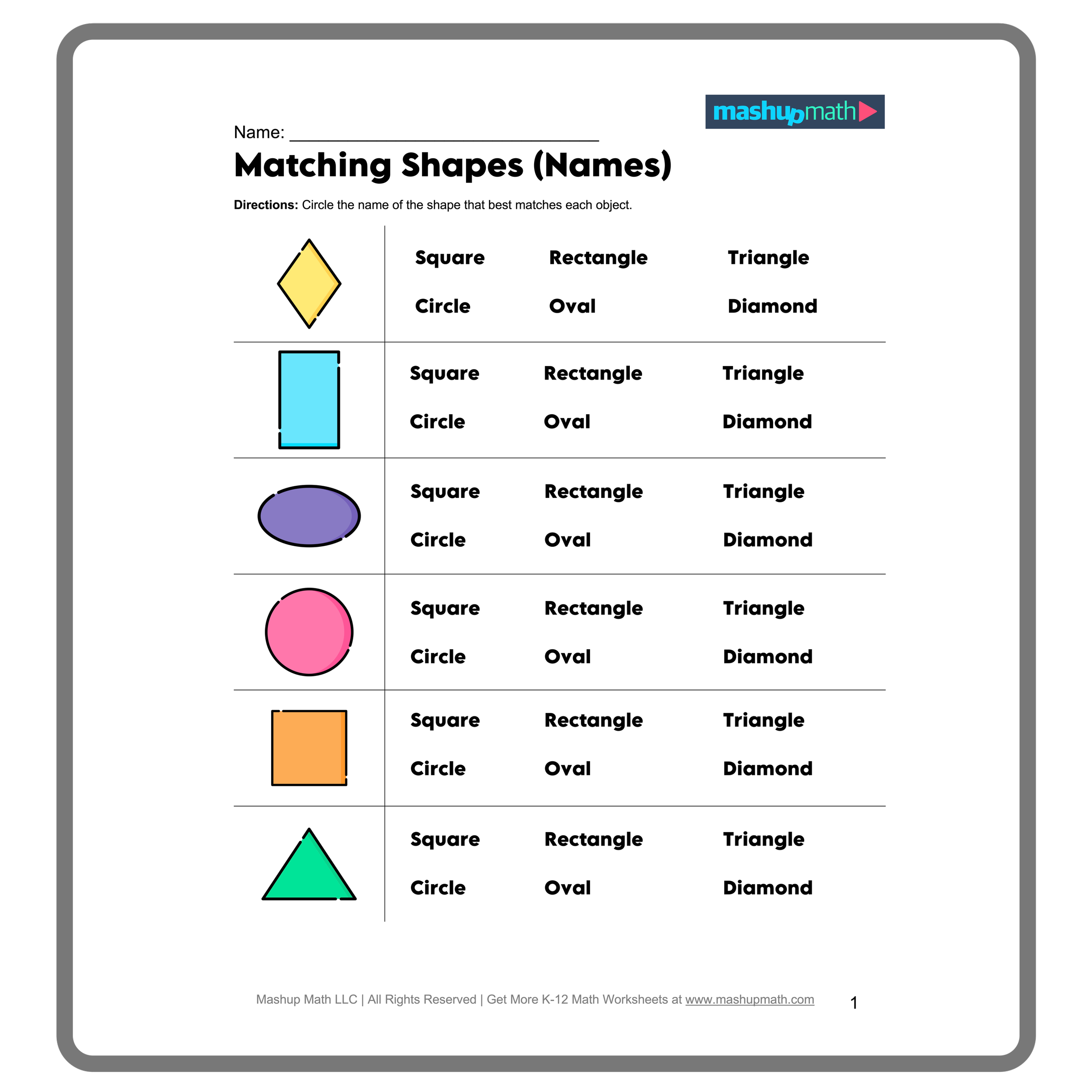 Matching 2D Shapes To Their Names | Kindergarten math worksheets free ...