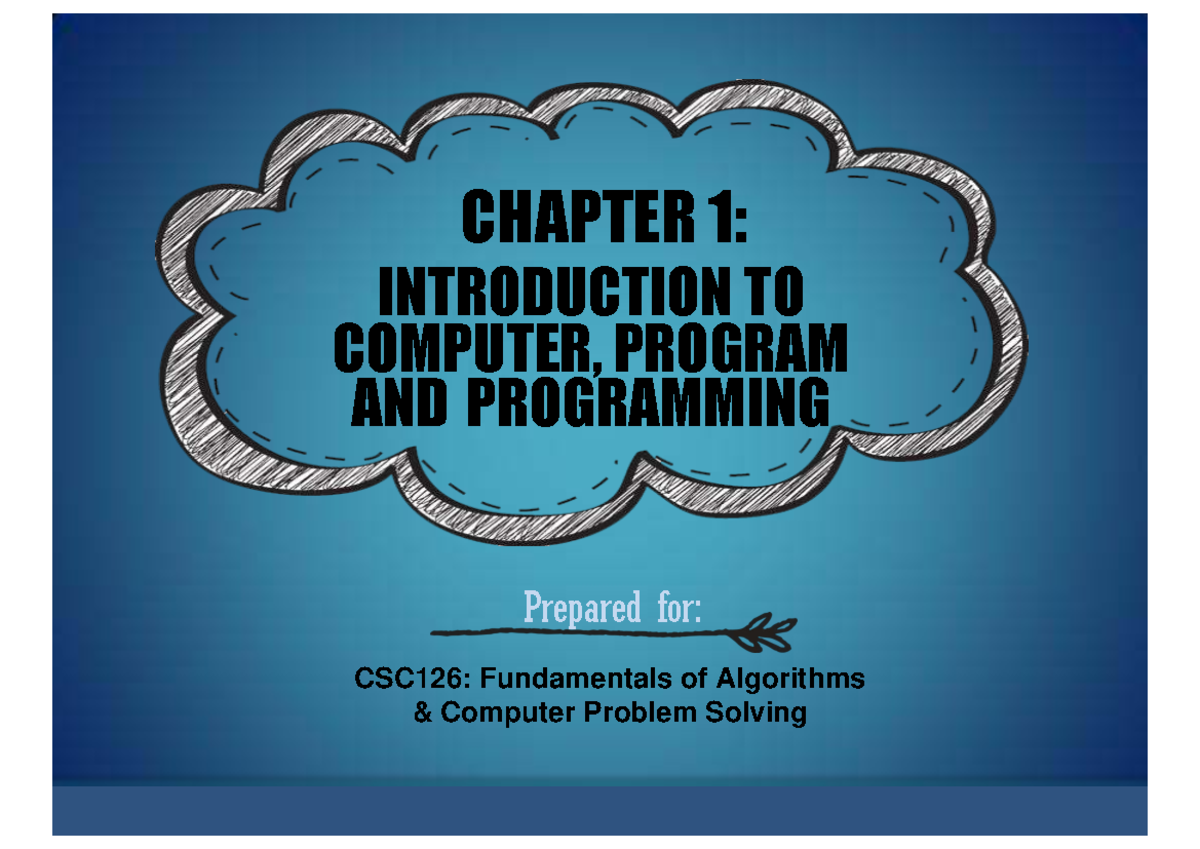 CSC126: Chapter 1 - Introduction to Computer Programming Concepts - Studocu