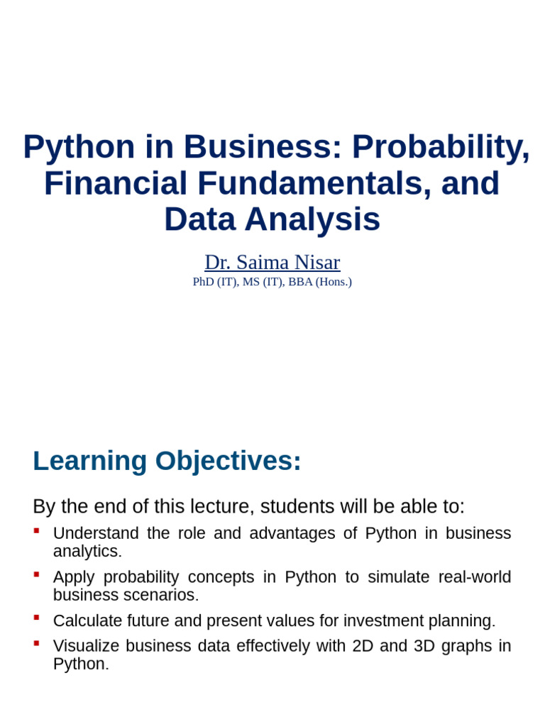 Python Lesson 7 Python in Business Probability, Financial Fundamentals ...