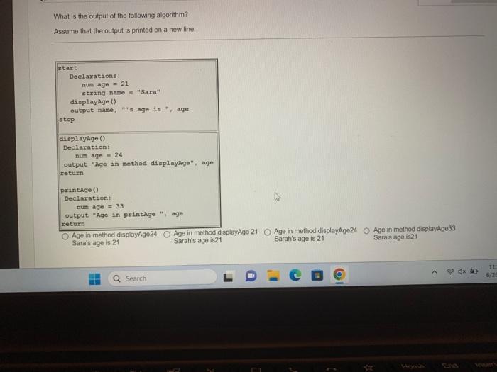 Solved What is the output of the following algorithm? Assume | Chegg.com