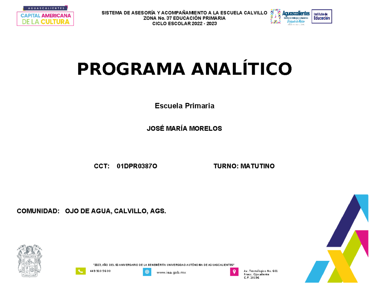 Programa Analítico Escuela Primaria JOSÉ María Morelos Listo - “2023 ...