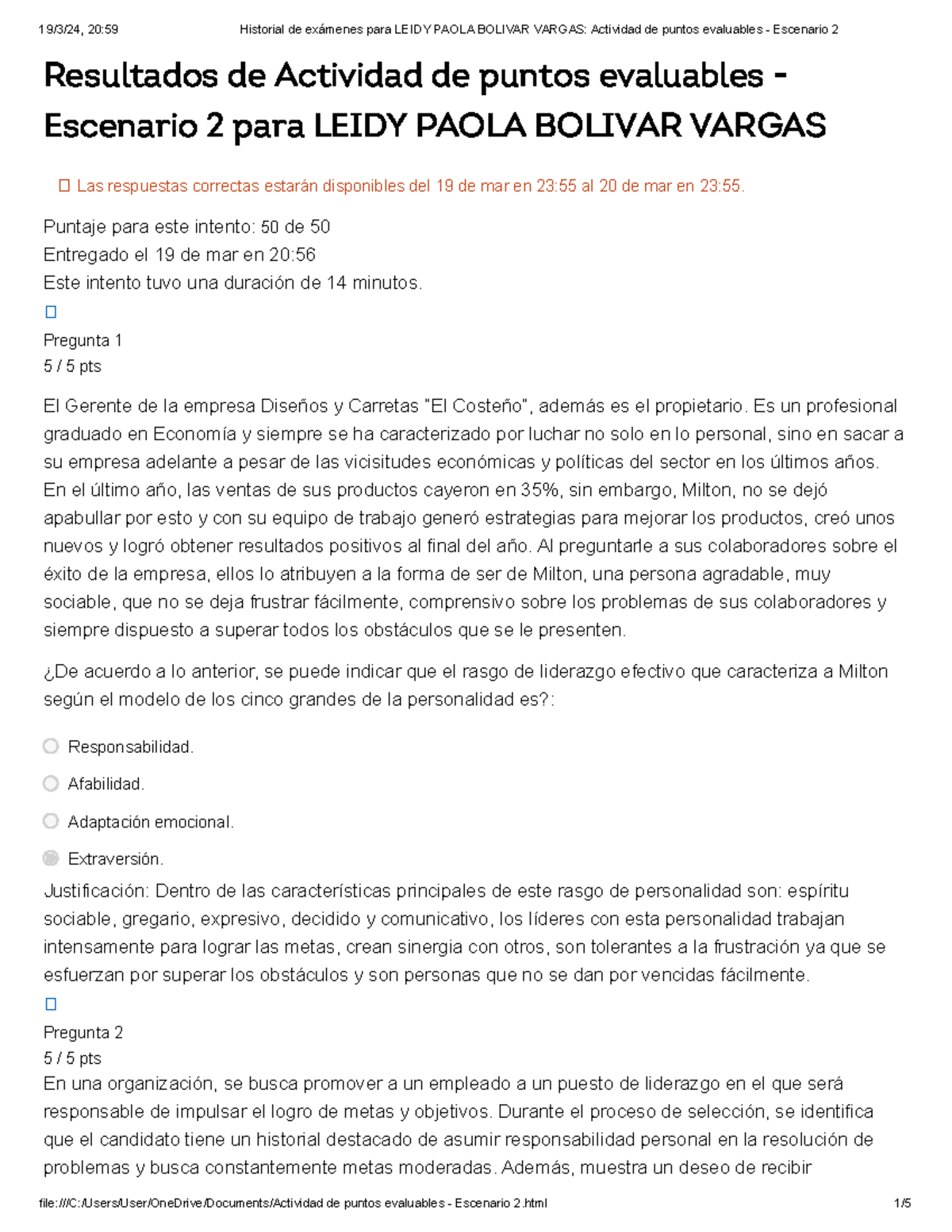 Actividad de puntos evaluables - Escenario 5 - Puntaje para este ...