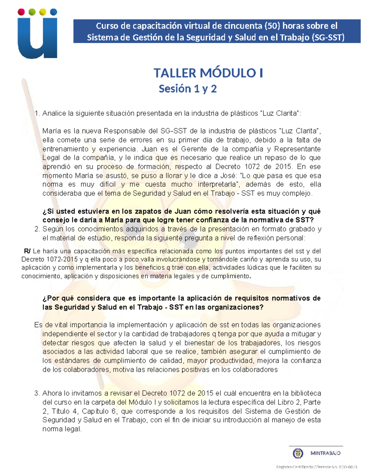 Taller 1- Módulo I Sesión 1 y 2 - Curso de capacitación virtual de ...