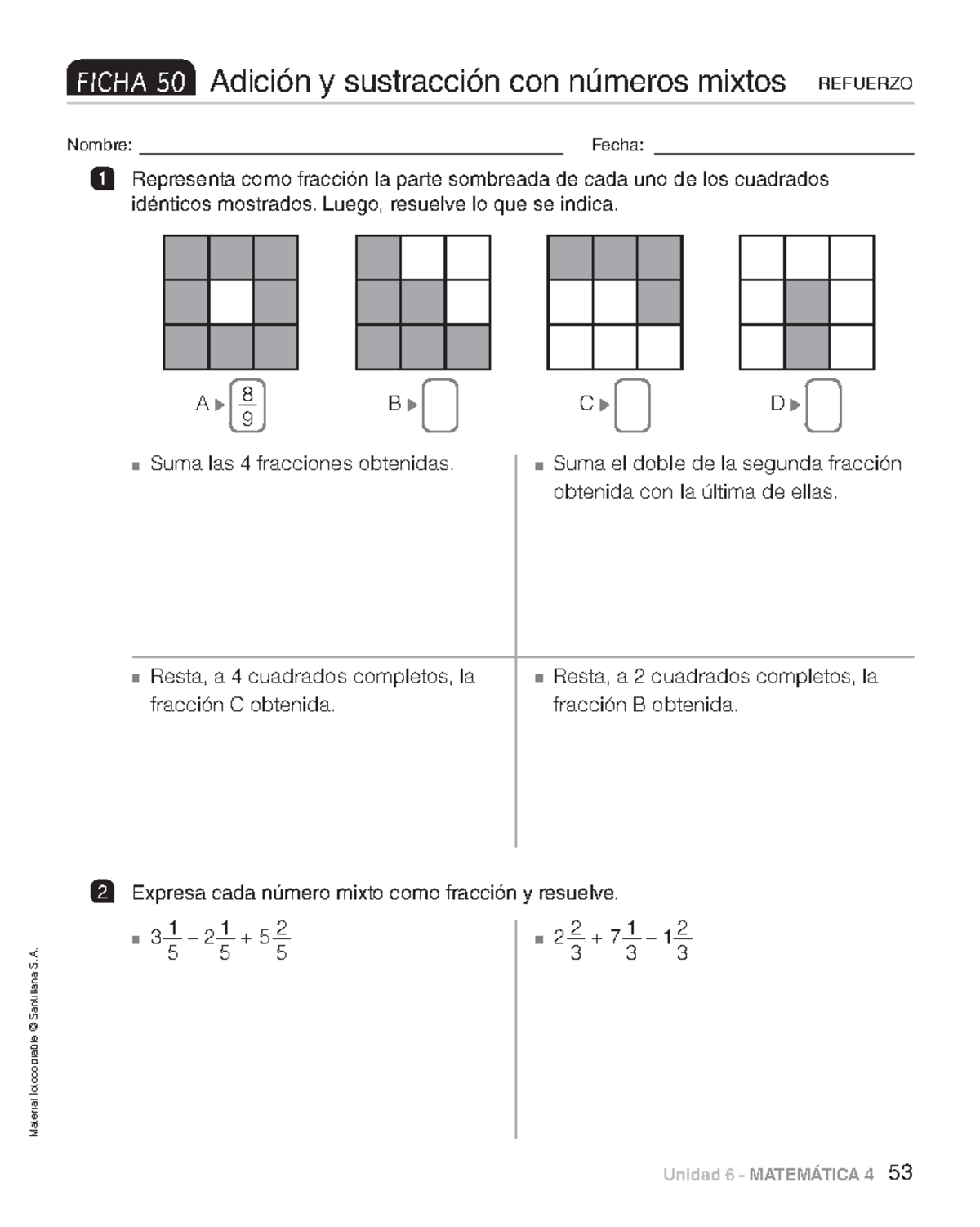 Ficha 50 - Adición Y Sustracción CON Números Mixtos - Nombre: Fecha ...