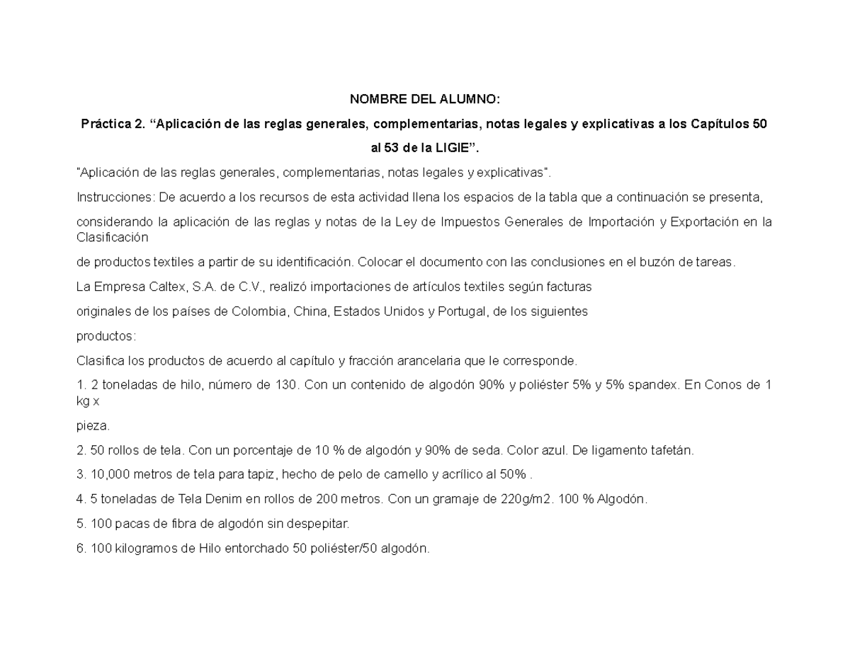 Aplicación de Reglas LIGIE Capítulos 50 al 53 - Textiles - Studocu