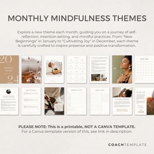 PRINTABLE Mindfulness 2024 Calendar and Planner With Monthly ...