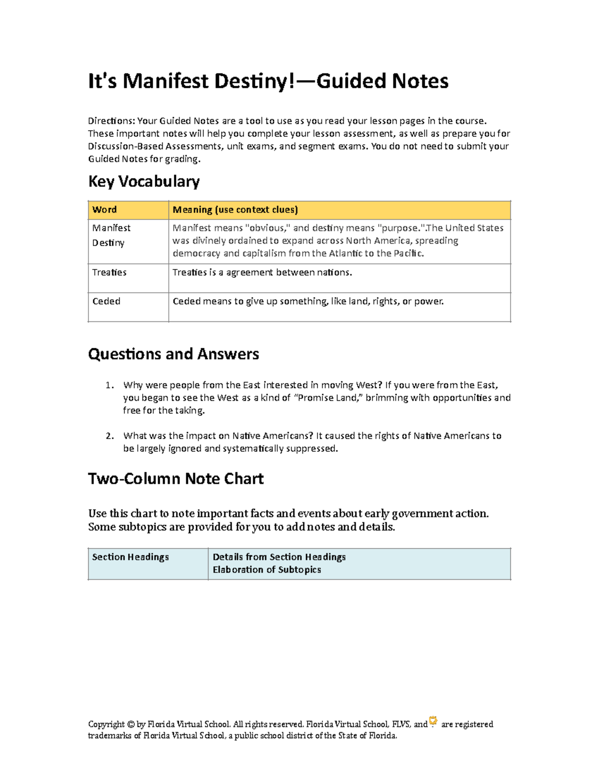 5.01 Guided History Notes: Manifest Destiny and Its Impact - Studocu