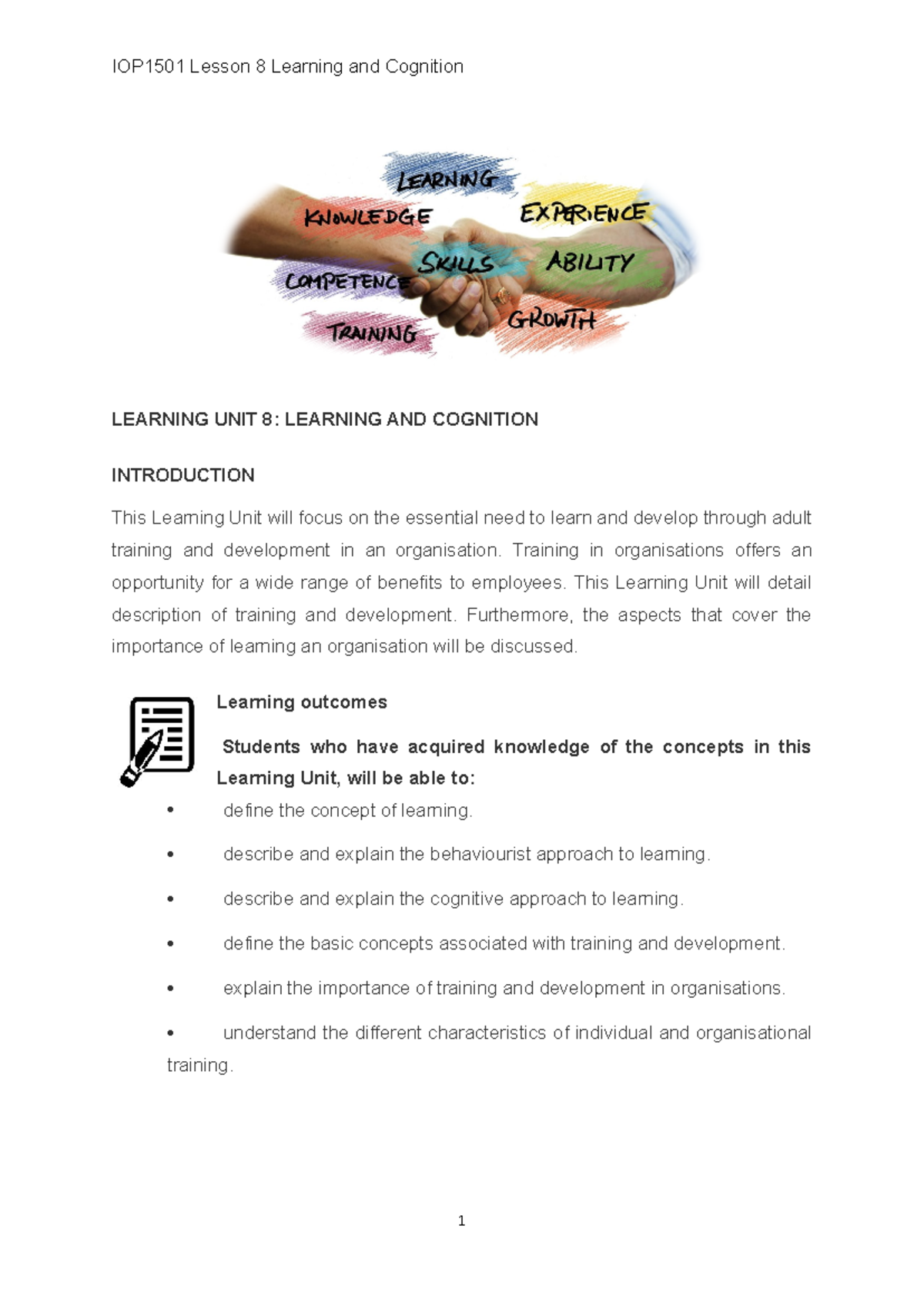 Learning Unit 8: Training and Cognition Concepts 2025 - Studocu