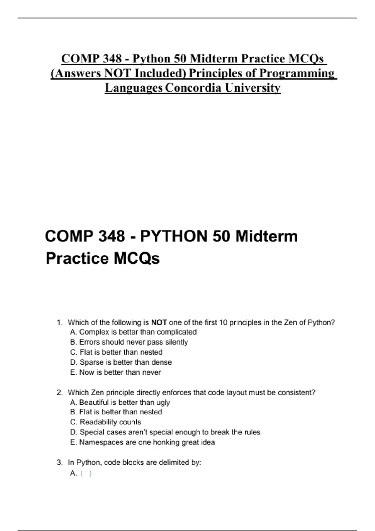 2025 COMP 348 - Python 50 Midterm Practice MCQs (Answers NOT Included ...