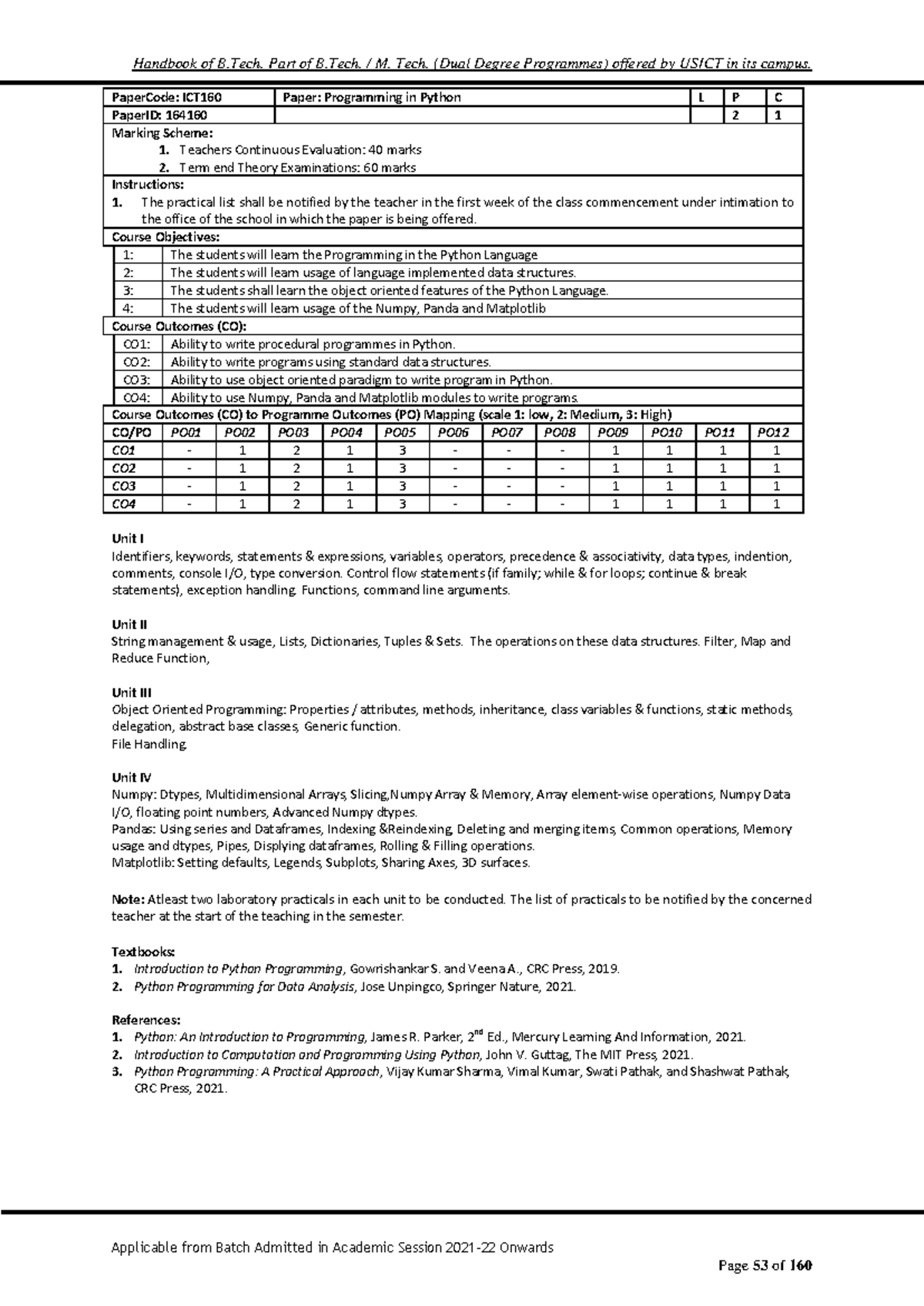 Programming in Python Syllabus for B.Tech ICT160 - USICT - Studocu