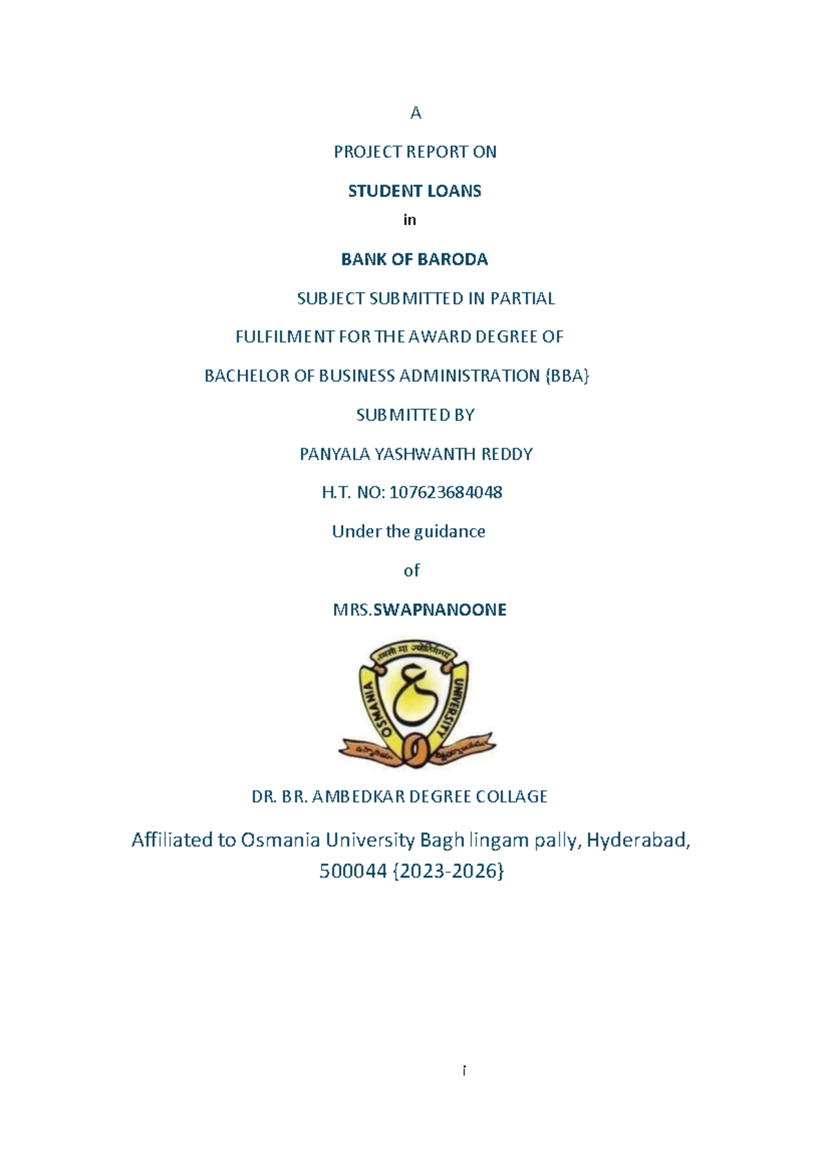 BBA 107623684048: Project Report on Student Loans at Bank of Baroda ...