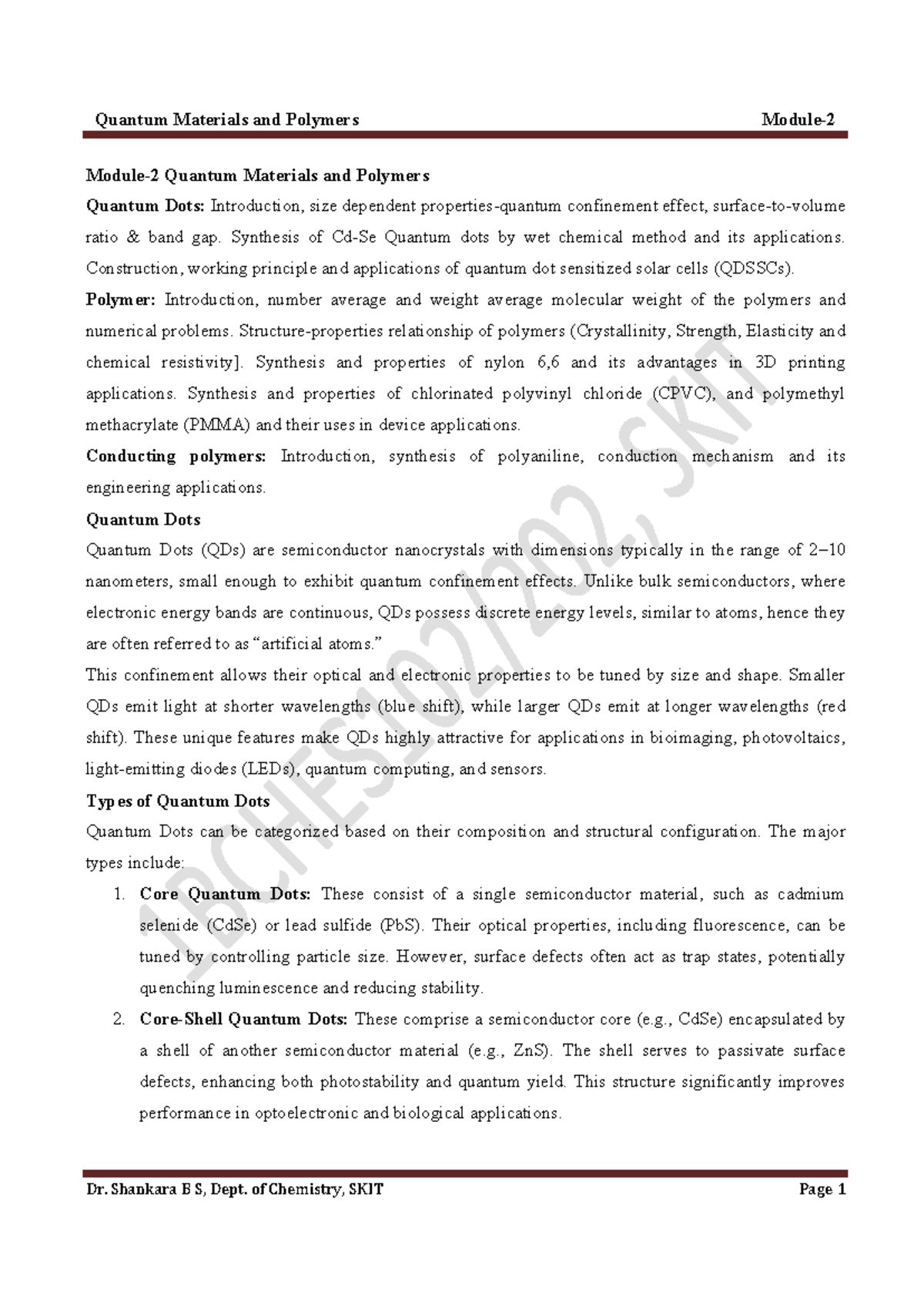 BCHES 102 Module 2: Quantum Materials, Polymers, and Applications - Studocu