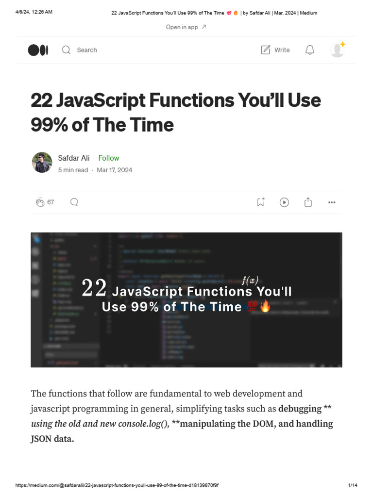 22 JavaScript Functions You’ll Use 99% of The Time 💯🔥 | by Safdar Ali ...