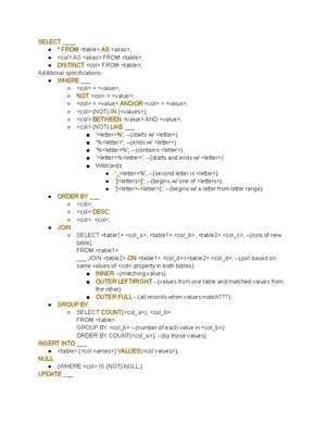 SQL Introduction Notes - SELECT ____ * FROM AS ; AS FROM ; DISTINCT ...