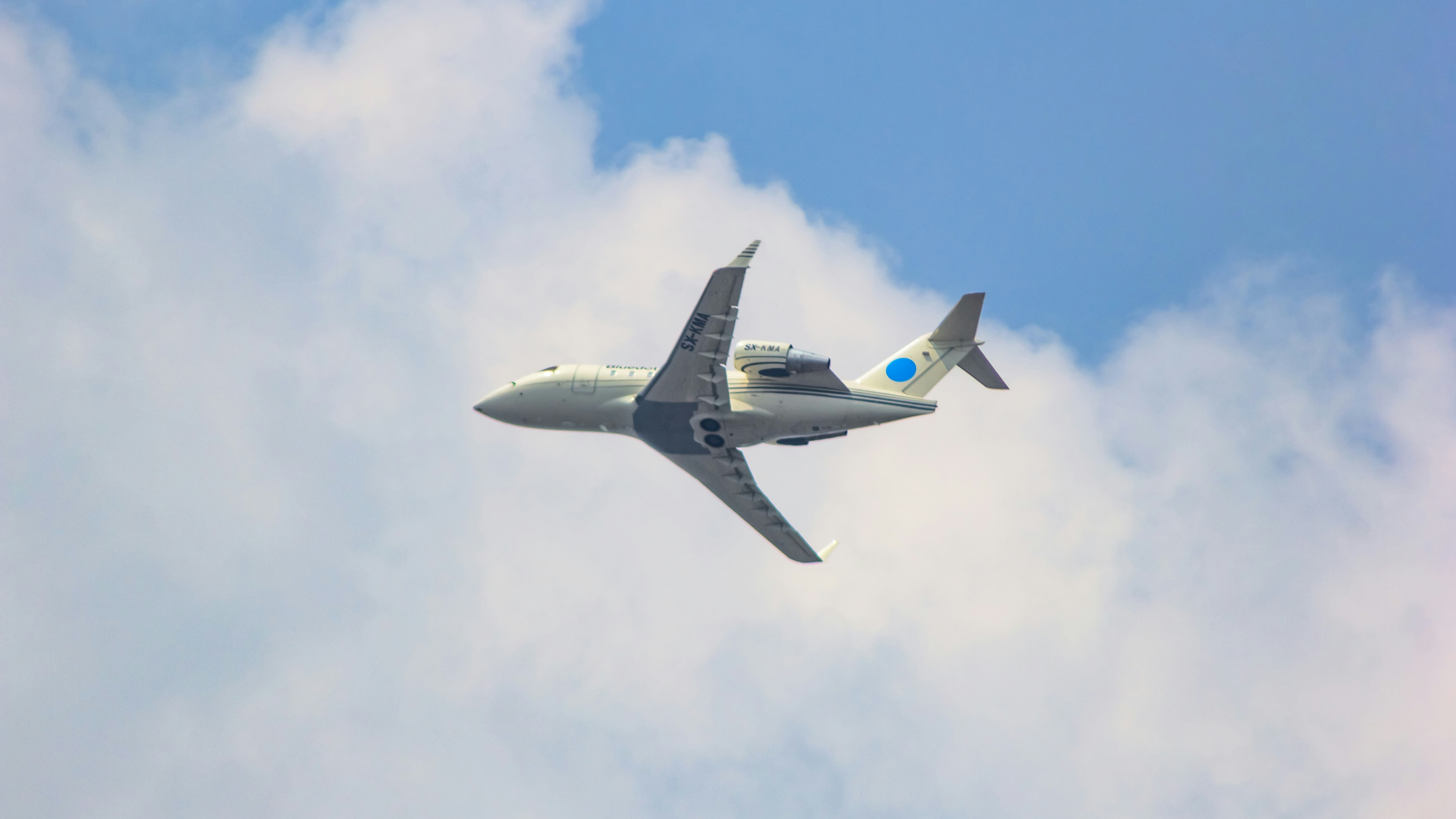 An airplane flying in a cloudy blue sky. photo – Free Technology Image ...