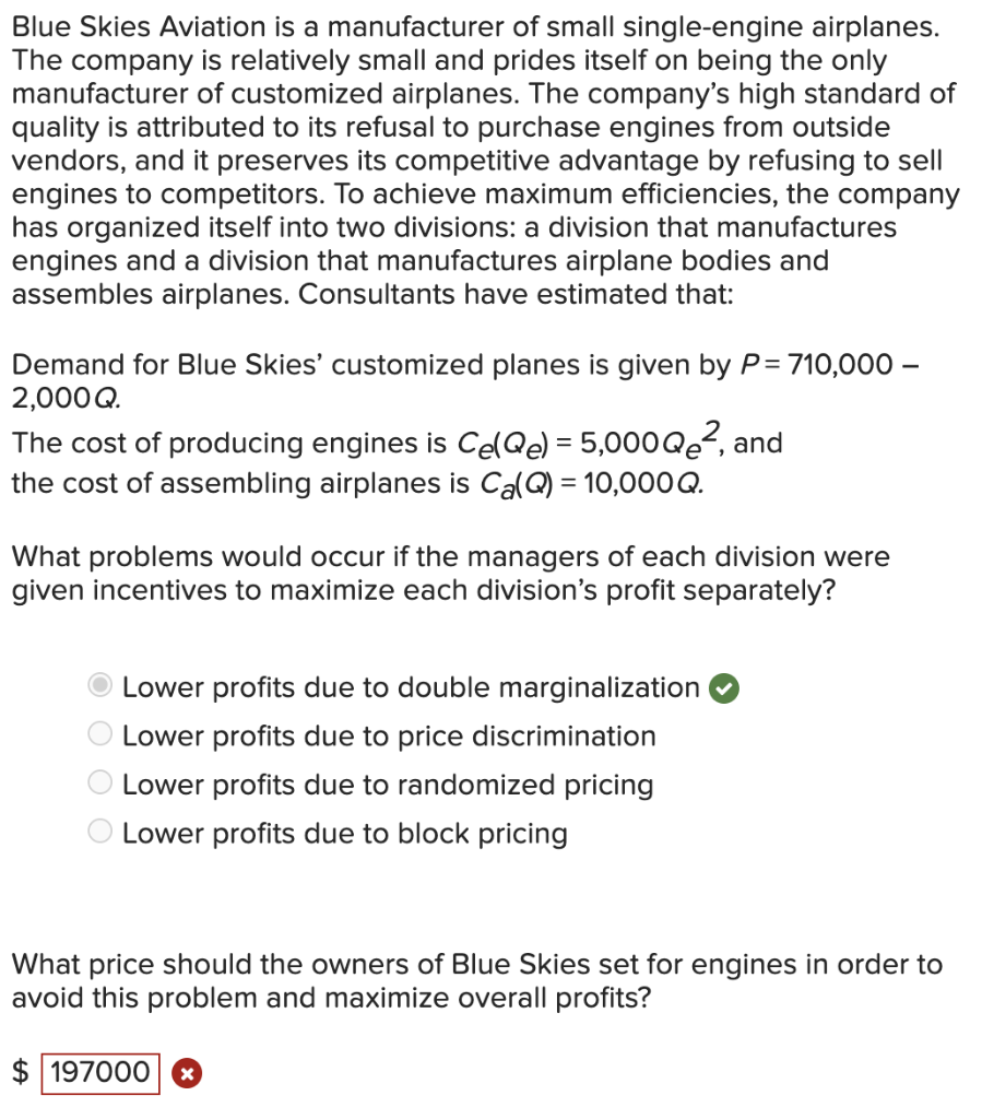 Solved Blue Skies Aviation is a manufacturer of small | Chegg.com