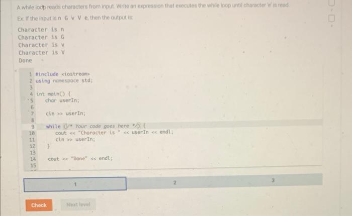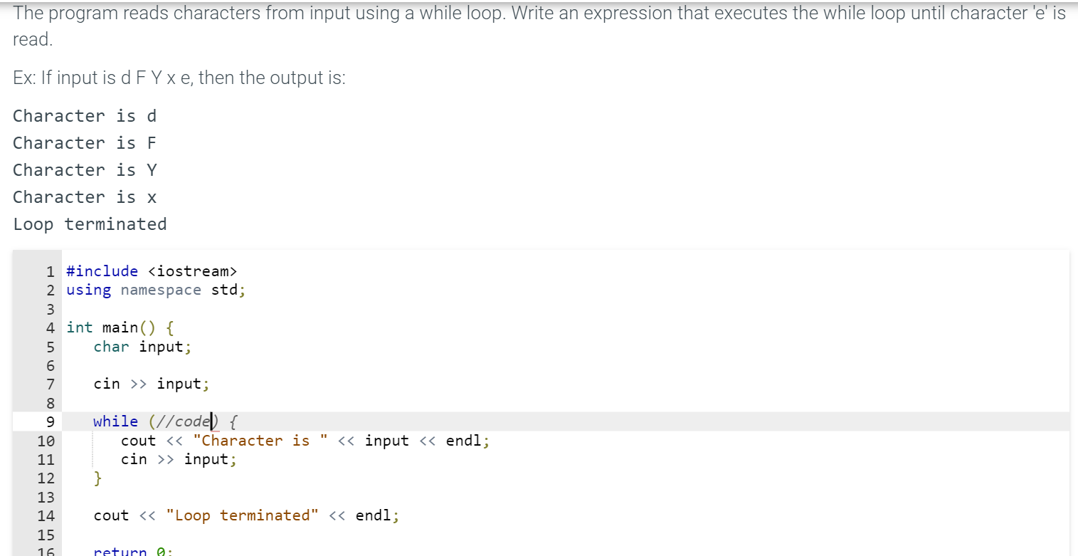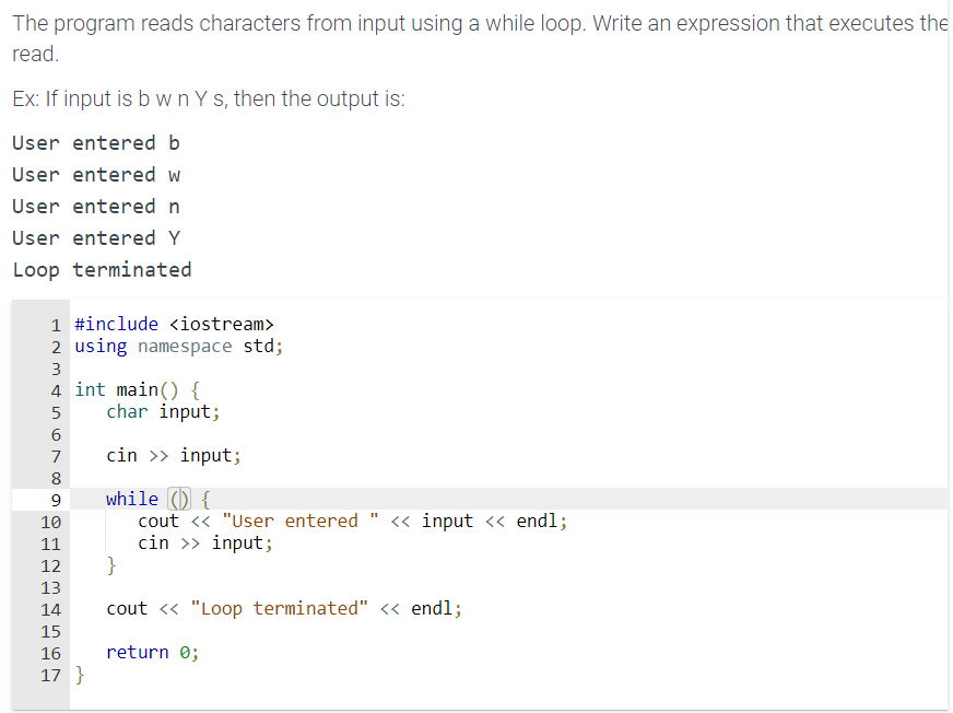 SOLVED: A while loop reads characters from input. Write an expression ...