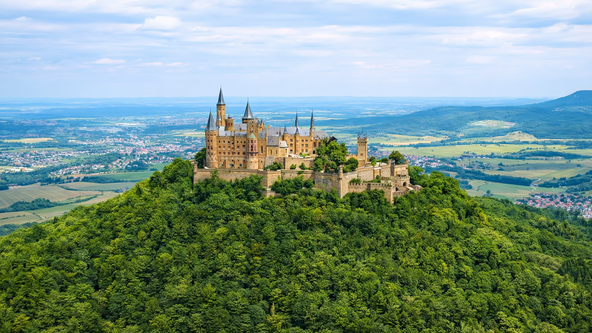 Linnanmäellä kohoava linna, joka tuntuu epätodelliselta