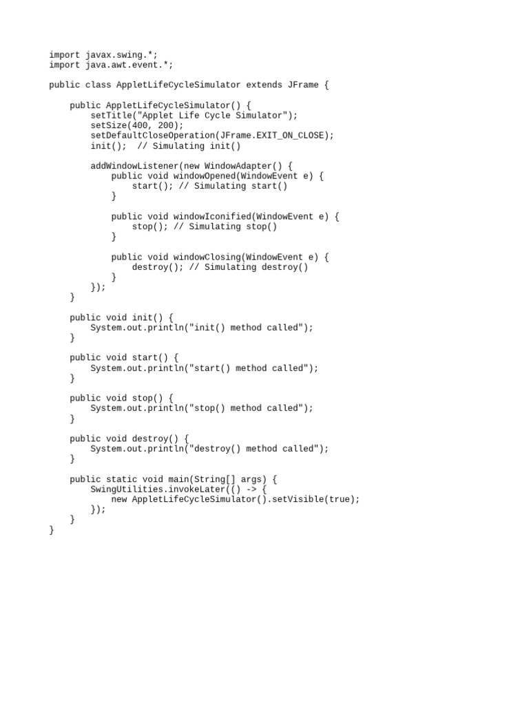 Applet Life Cycle in Java | PDF | Java (Programming Language) | Class ...