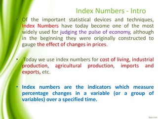 Index Numbers - meaning, characteristics and uses. | PPTX