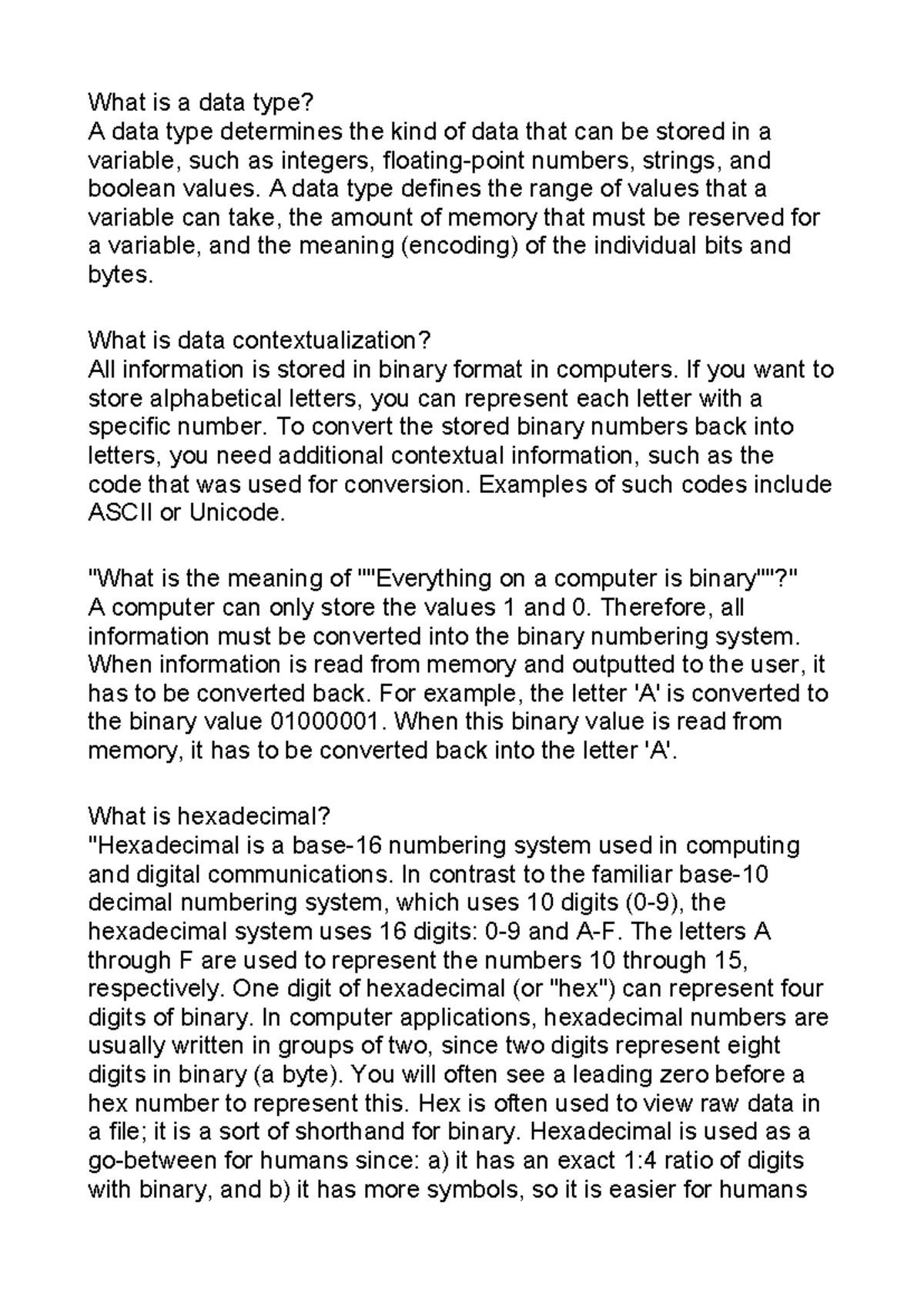 ICT100 Notes 2 - What is a data type? A data type determines the kind ...