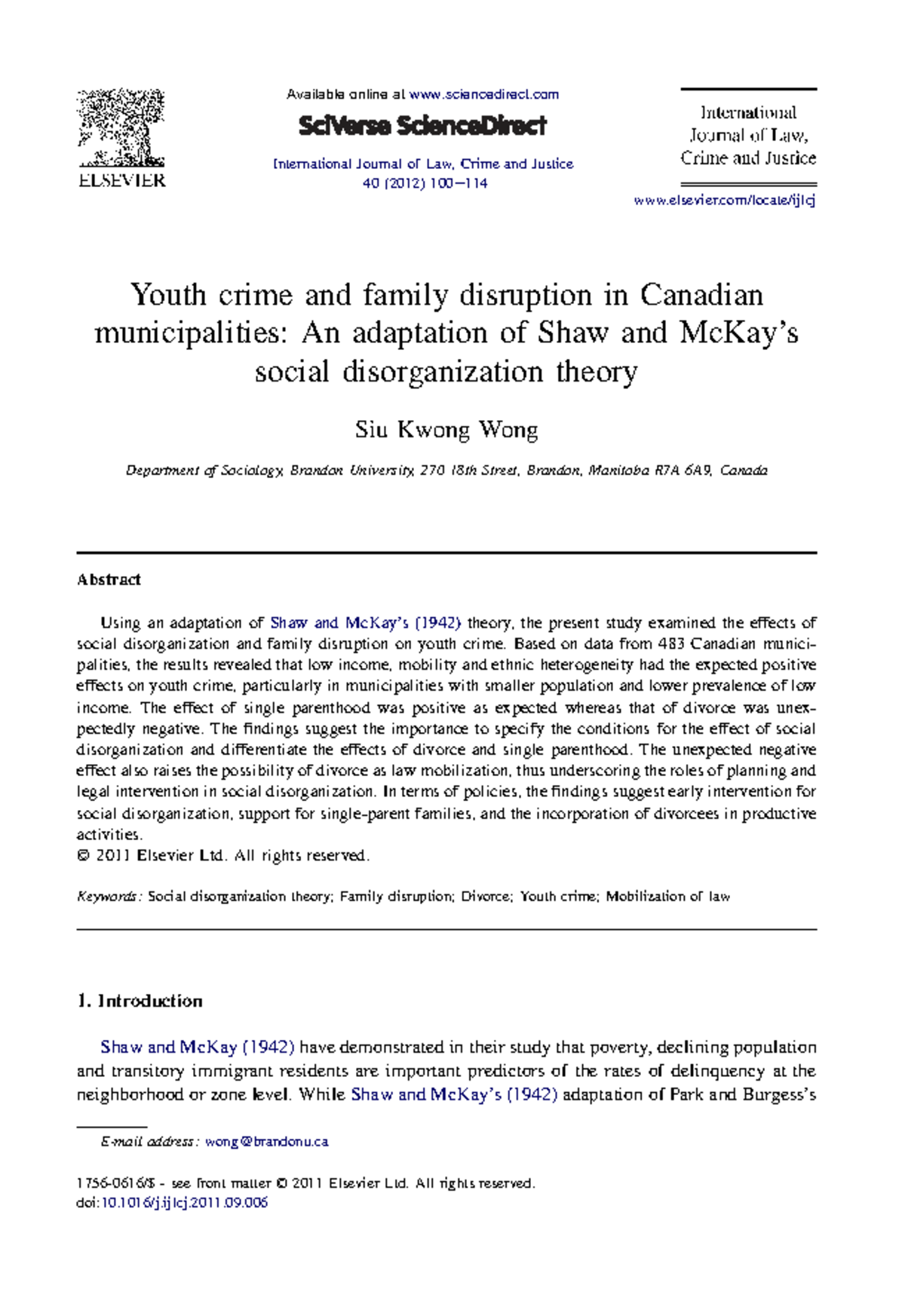 Wong 2012-1: Social Disorganization Theory and Youth Crime in Canada ...
