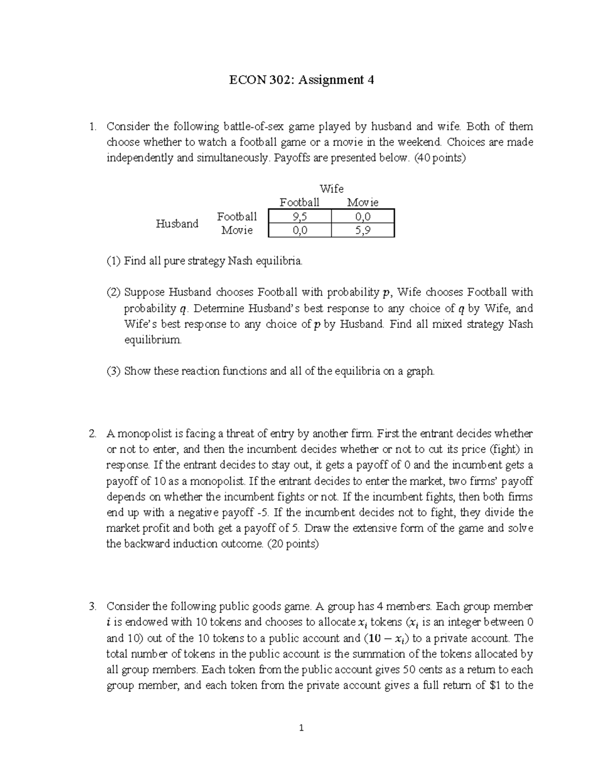 ECON 302: Assignment 4 - Game Theory and Public Goods Analysis - Studocu