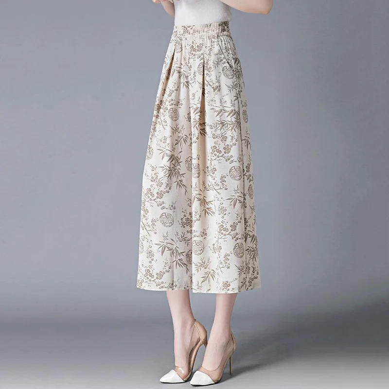 Pantalones de pierna ancha con estampado Chinoiserie para mujer, falda ...