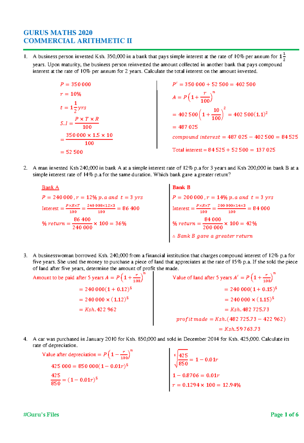 GURUS MATHS 2020 COMMERCIAL ARITHMETIC II - GOOD NOTES - Studocu
