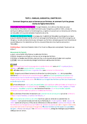 Analyse linéaire Gargantua Chapitre 14 - Texte PDF et Signification ...