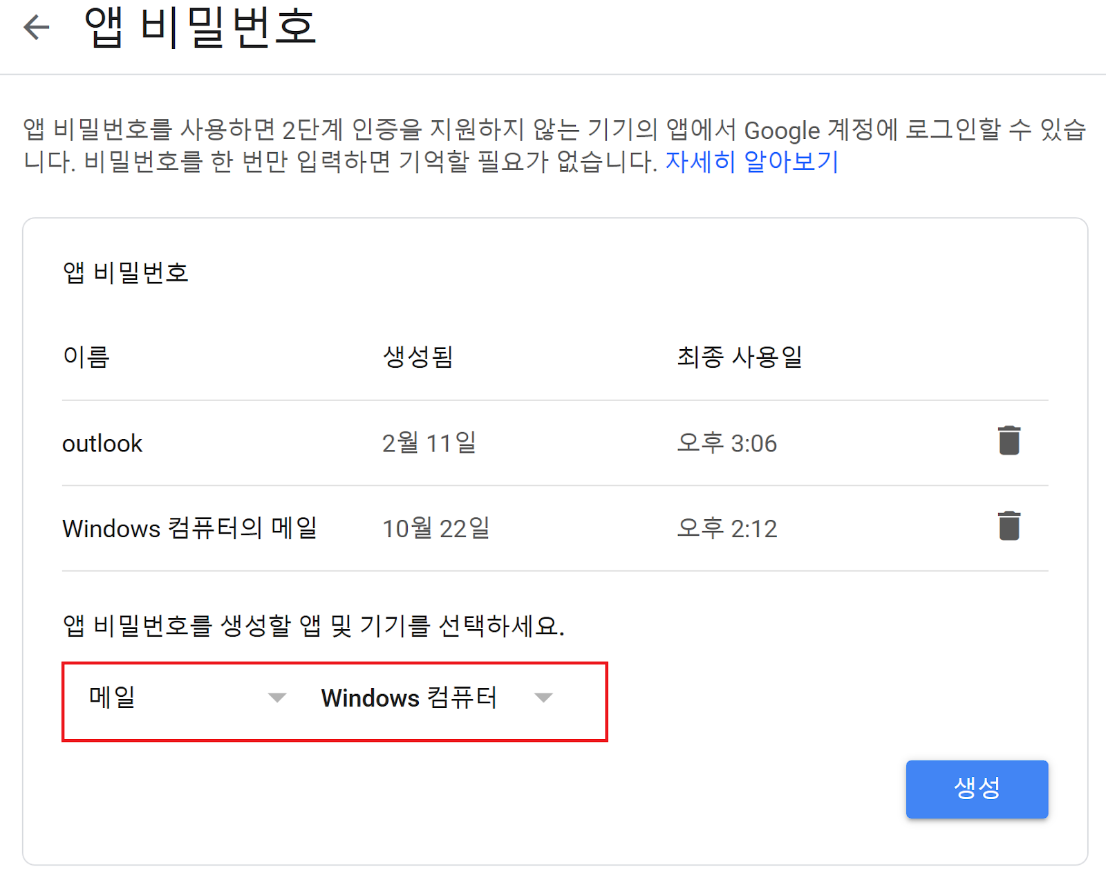 Gmail SMTP 설정을 위한 앱 비밀번호 발급받기 : 네이버 블로그