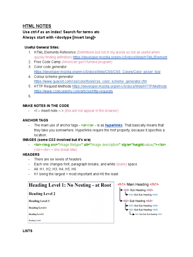 1 - HTML Notes | PDF | Html Element | Hyperlink