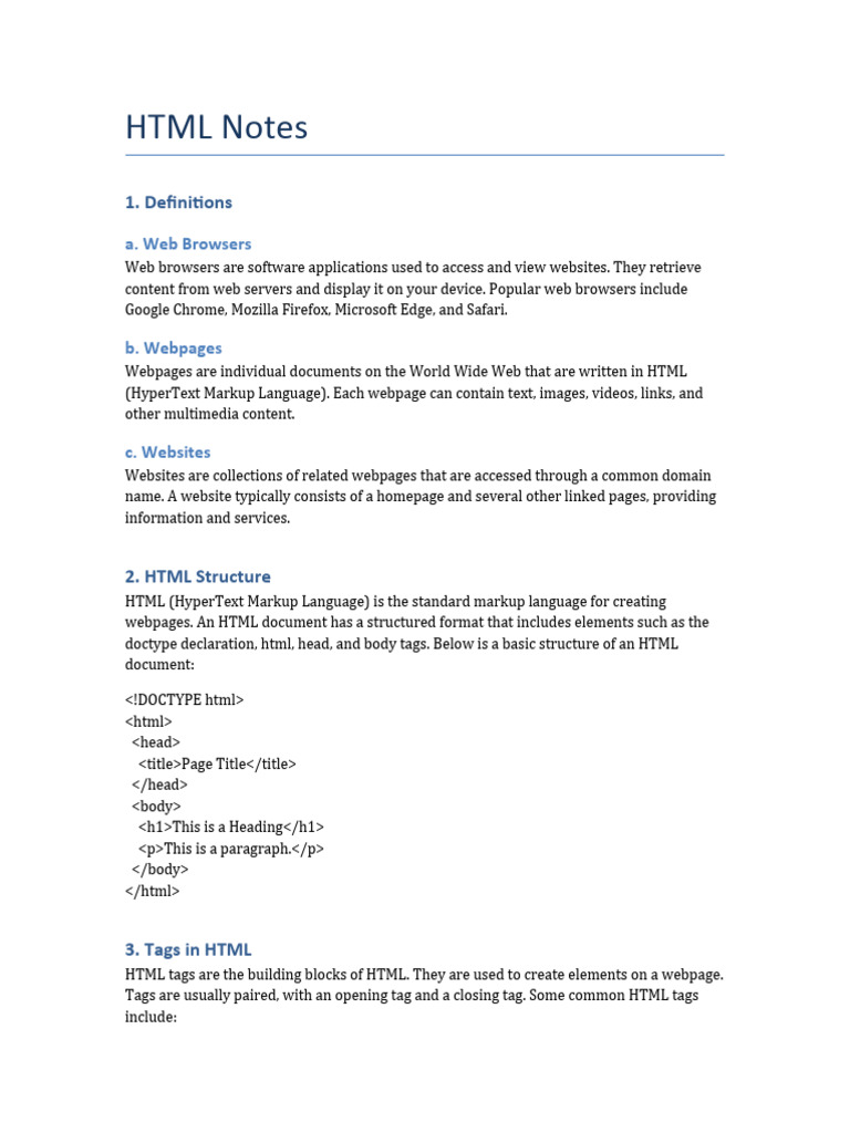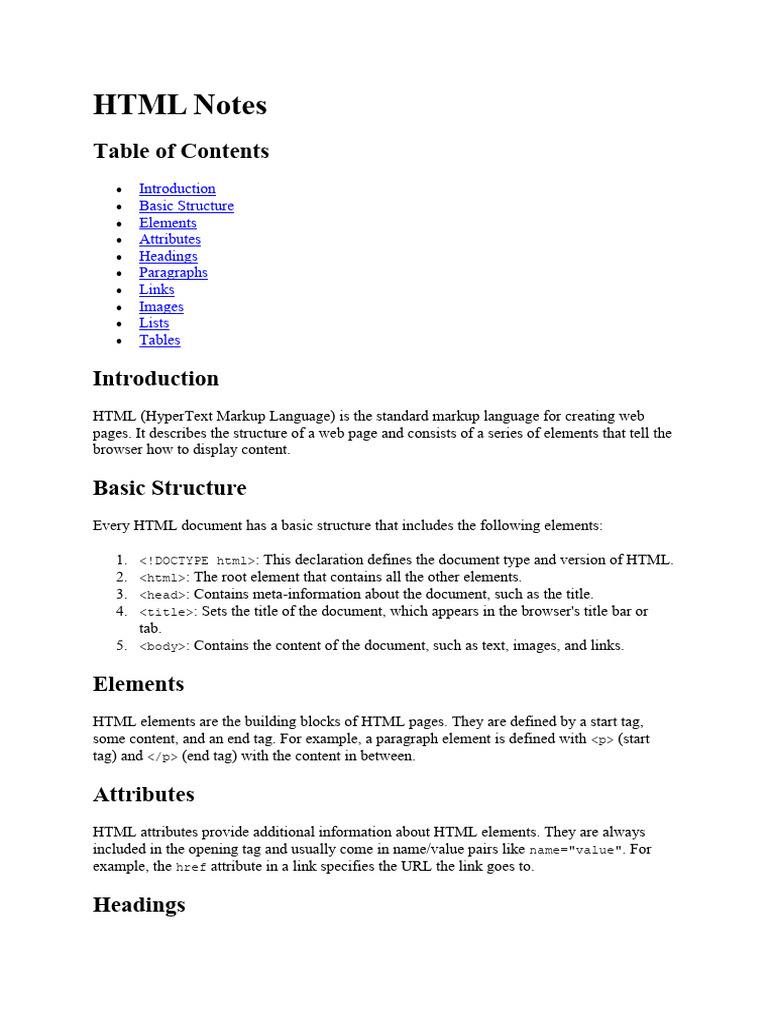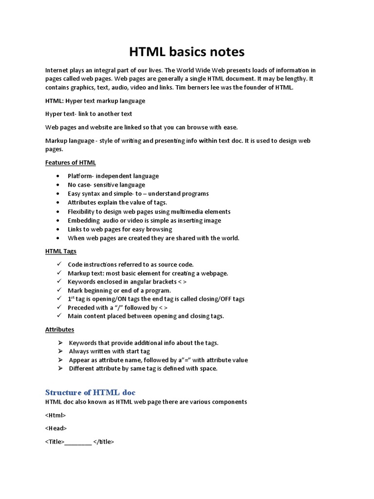 Basic Html Notes | PDF | Web Design and HTML | Internet
