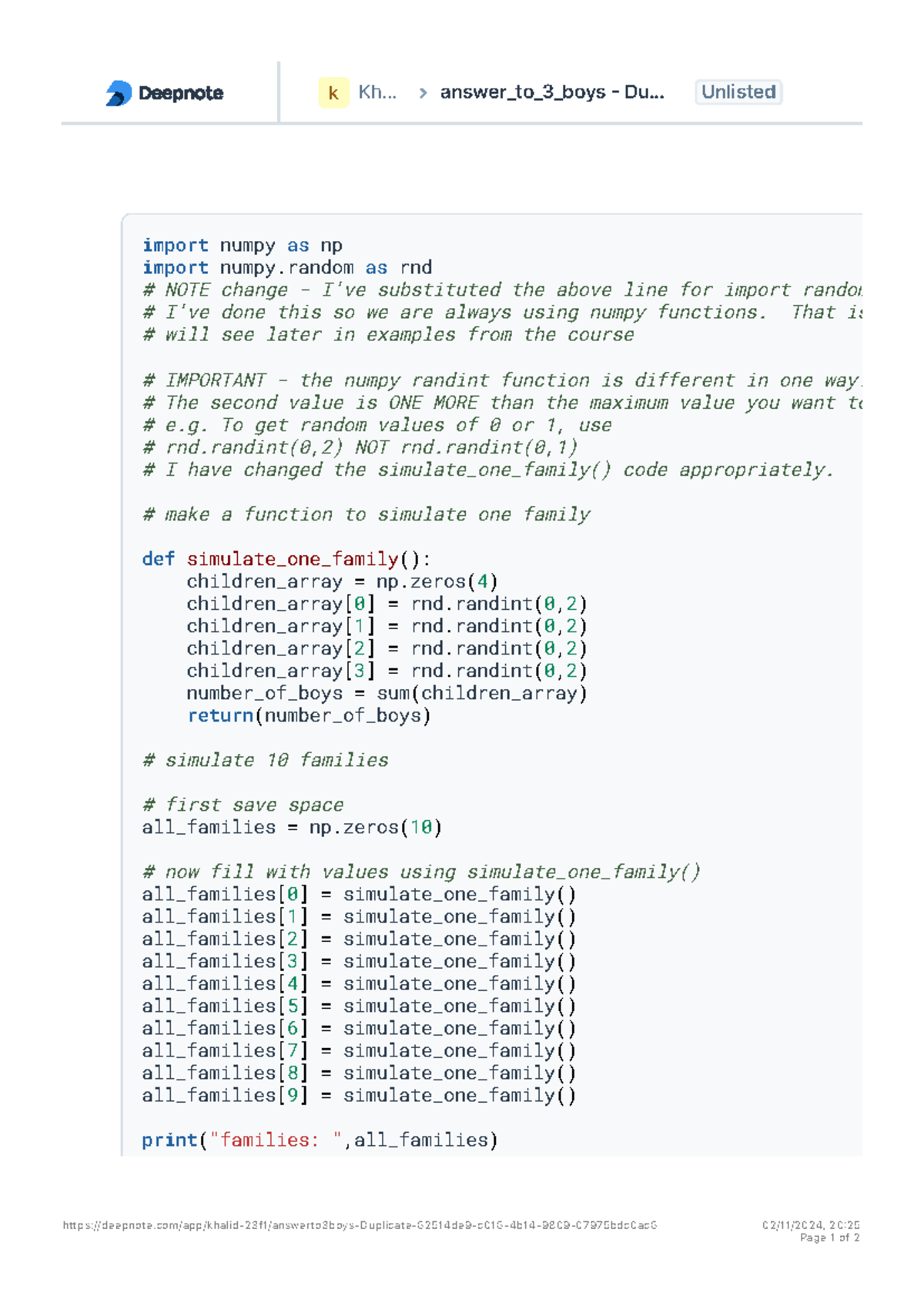 Answer to 3 boys - Duplicate - import numpy as np import numpy as rnd ...
