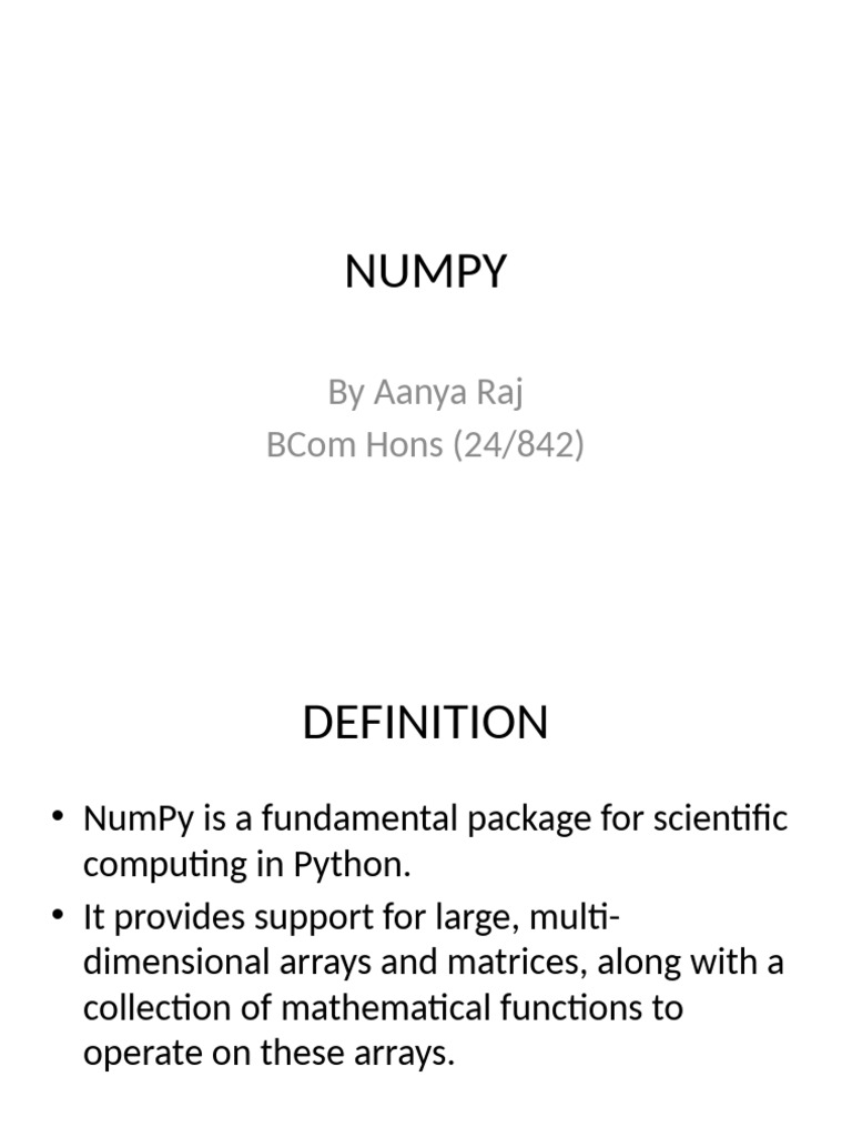 NumPy.pptx Bachelor of Computer Application | PPTX
