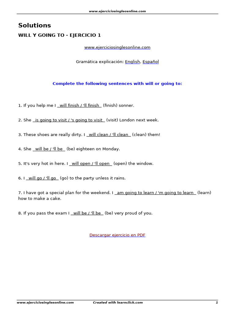 Solutions Will y Going to Ejercicio 1 (1) | PDF