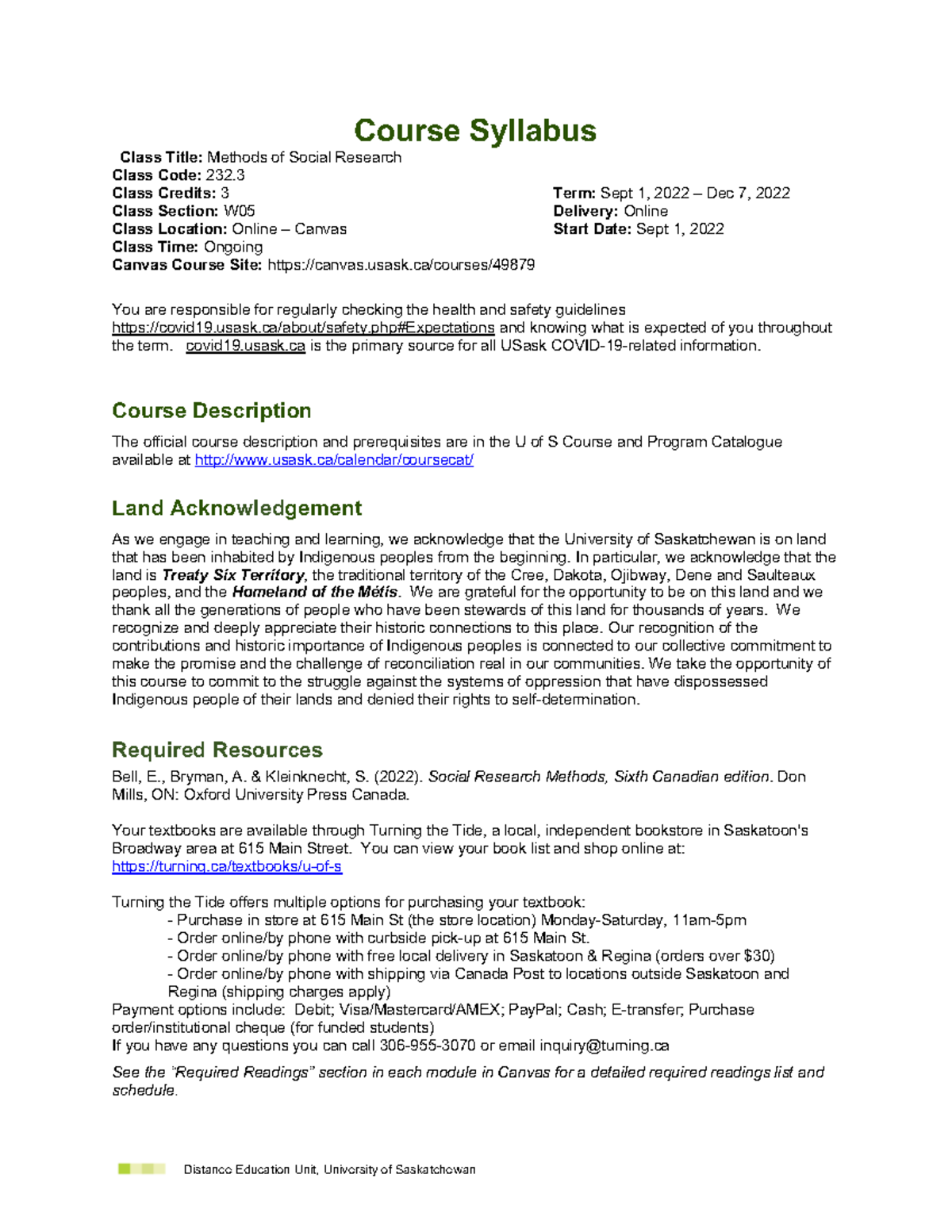 Quinlan - Soc 232 syllabus - Fall 2022 - Distance Education Unit ...