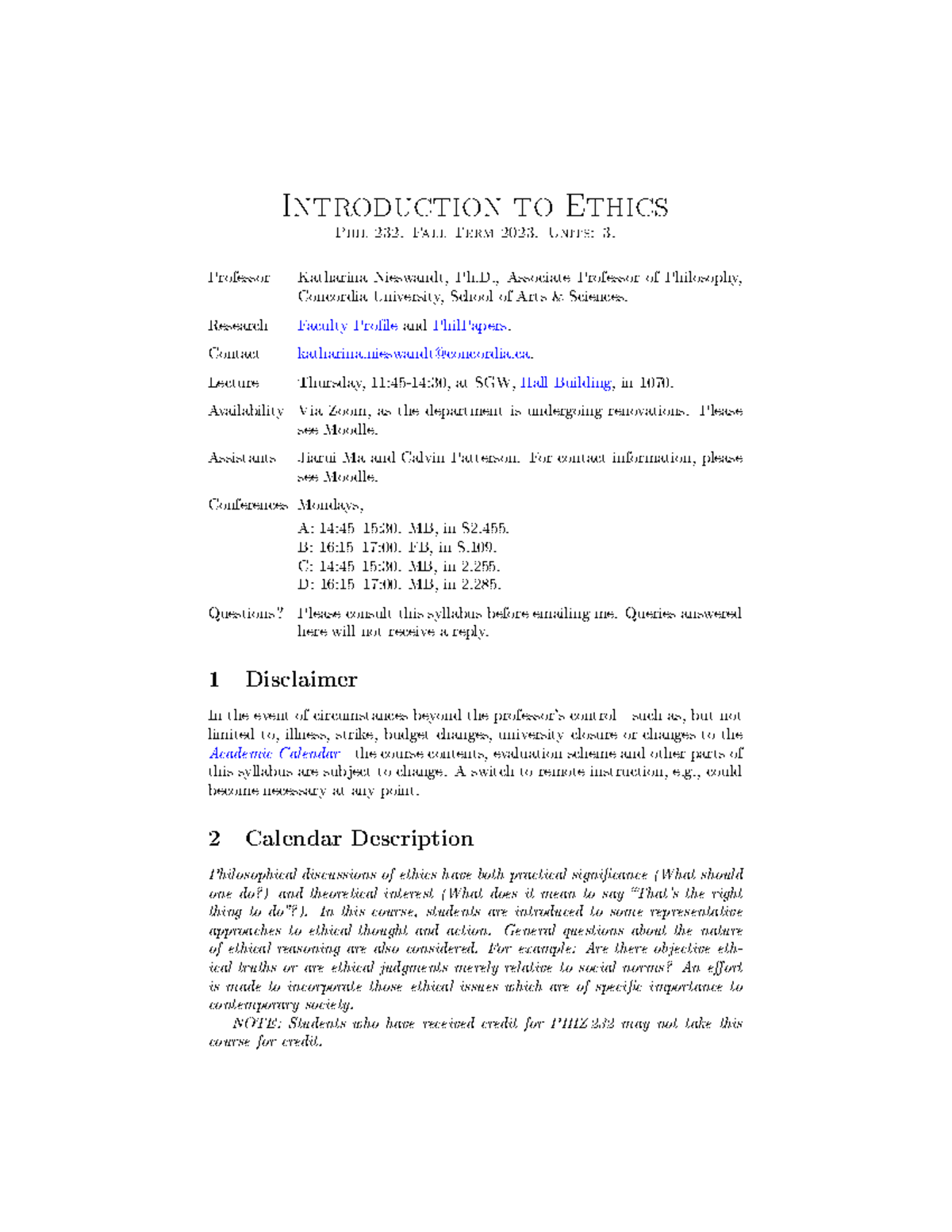 Syllabus FT 2023 Intro Ethics - Introduction to Ethics Phil 232. Fall ...