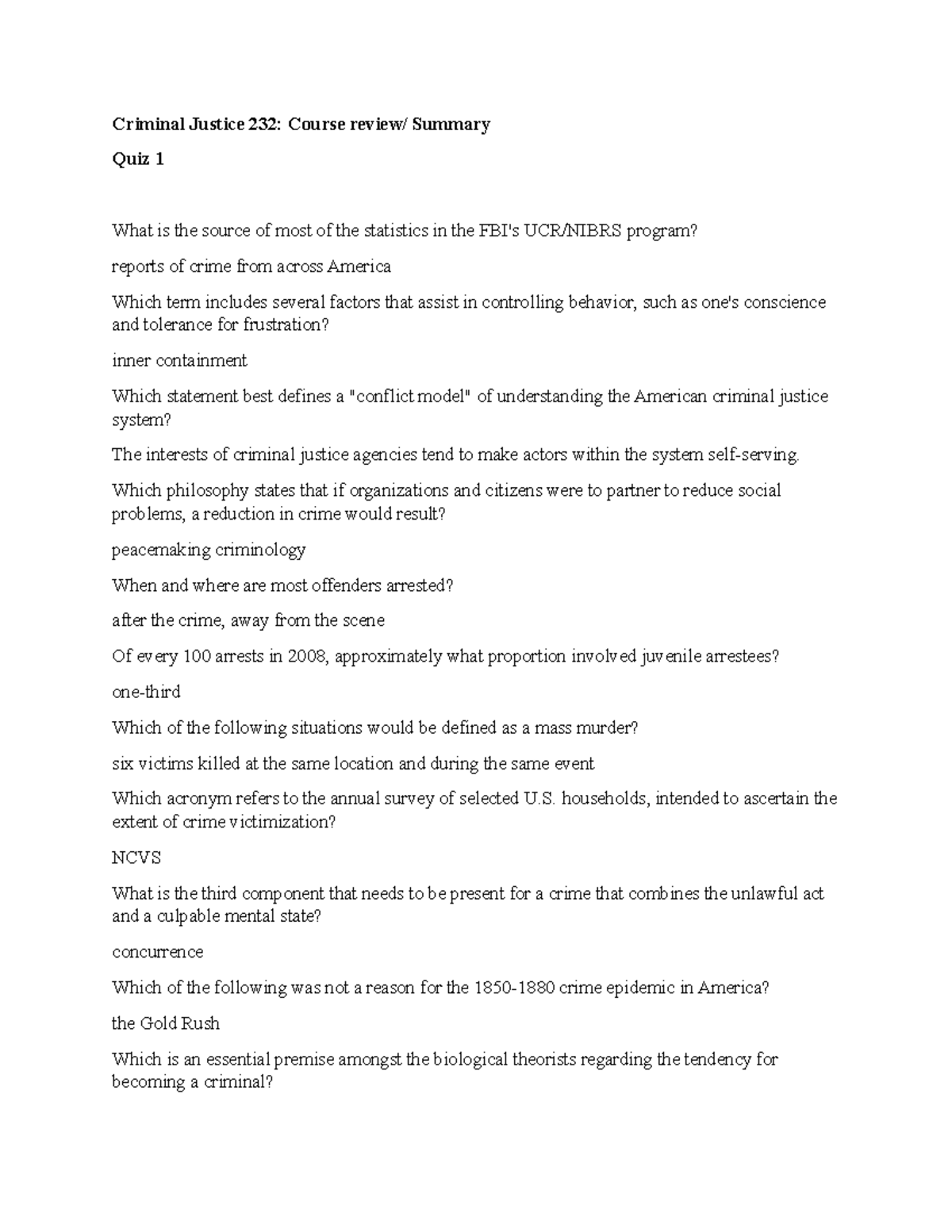 CJUS 232-course review-including all chapters - Criminal Justice 232 ...