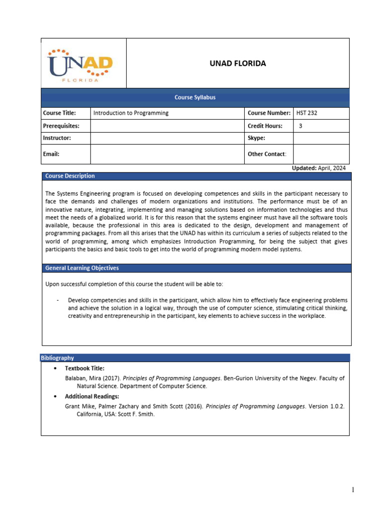 Syllabus HST 232 | PDF | Computer Programming | Programming Language