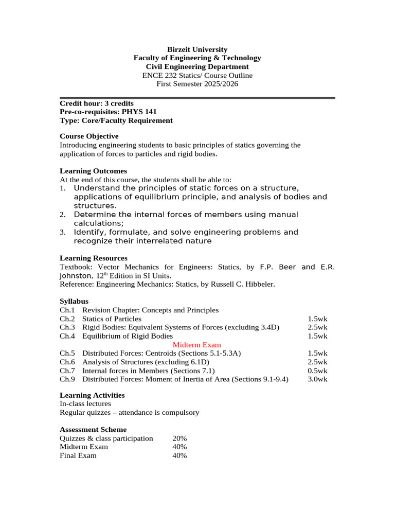 ENCE+232+Course+Outline+2025 2026+1st+Semester | PDF
