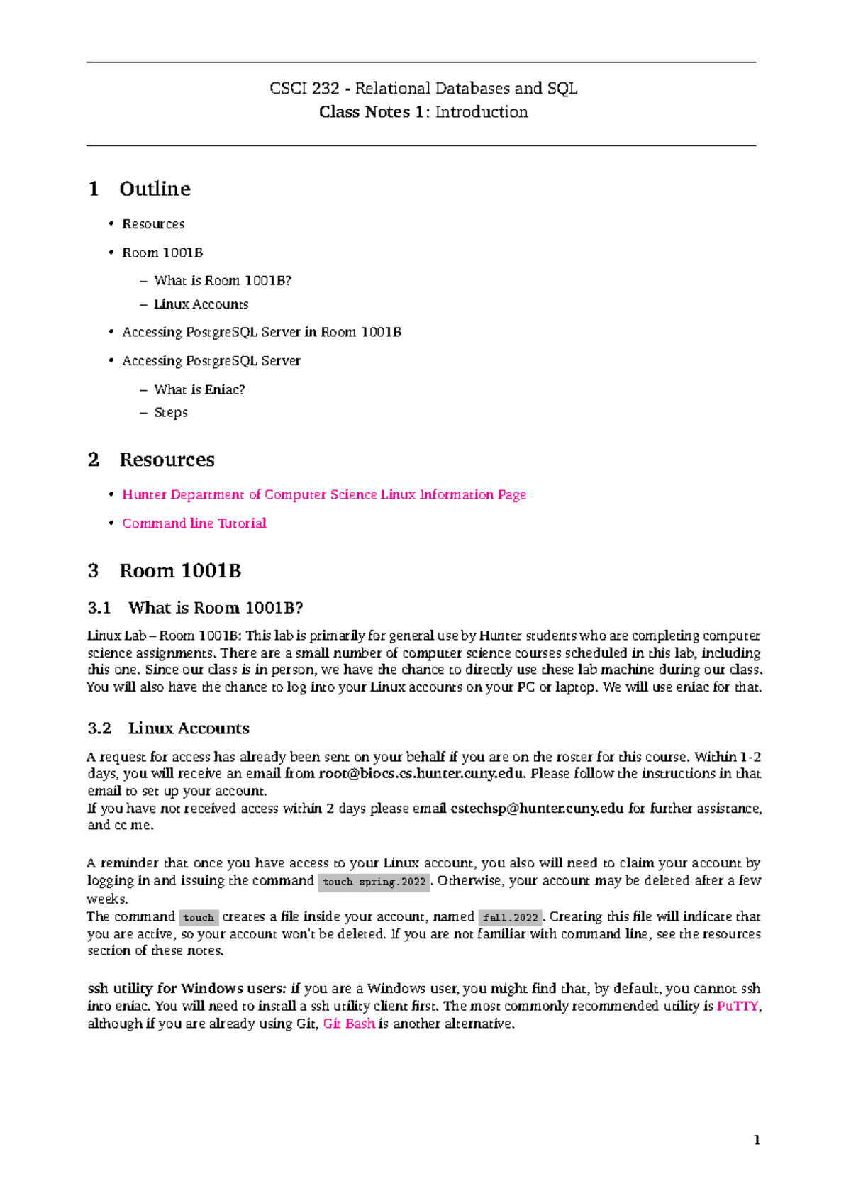 CSCI 232 SQL Class Notes: Introduction to Databases and PSQL Concepts ...